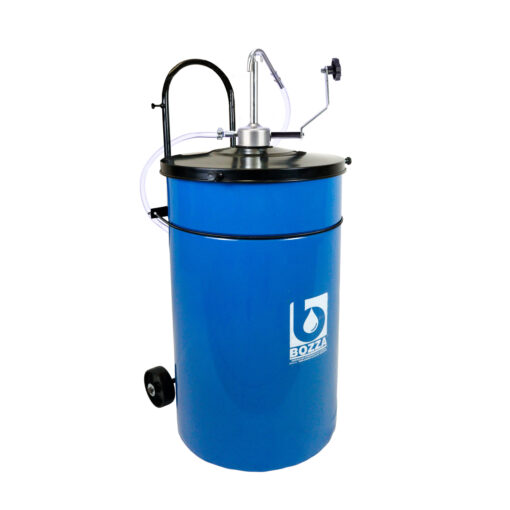 Bomba manual móvil para trasvasar aceite lubricante a la caja de cambios y diferencial, con sistema de manivela. Adecuada para estaciones de servicio, concesionarios y empresas de transporte en general que no dispongan de aire comprimido.
